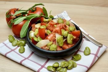 Die Bohnen aus den Schoten lösen und in Salzwasser ca. 15 Minuten kochen.