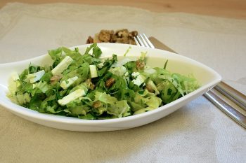 Den Feta in kleine Stücke schneiden. Den Endiviensalat putzen, evtl. welke Blätter entfernen, waschen, trockentupfen und in feine Streifen schneiden. In eine Schüssel geben, Dressing zufügen und gut mischen. Fetastücke und Walnüsse zufügen, nochmals vorsichtig mischen, abschmecken und servieren.