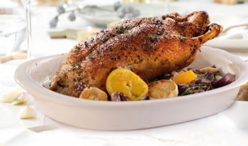 Die Ente gründlich waschen und abtrocknen, innen und außen mit Meersalz und Pfeffer würzen. Die Flügel hinter den Rücken stecken.