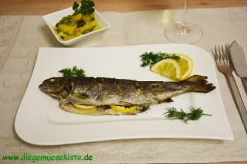 Die Forellen mit dem Salat und eventuell einigen Zitronenscheiben servieren.