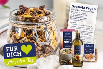 Trocken und kühl gelagert bleibt das Granola mindestens 2 Wochen knusprig und frisch.