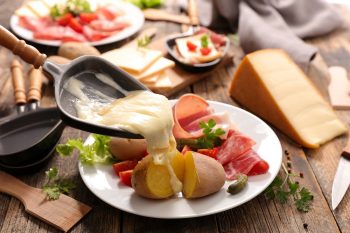 gemütlichen Raclette-Essen mit Freunden. Der Name leitet sich übrigens vom französischen Verb „racler“ ab,