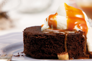 Den lauwarmen Kuchen aus der Springform lösen, in die gewünschte Form bringen und am besten noch warm mit Sahne und Sauce servieren.