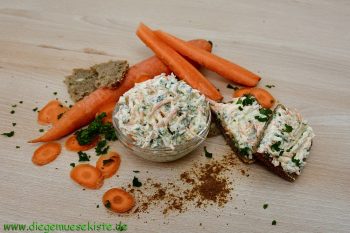 Auf frischem Brot nach Wahl anrichten und mit Möhrenraspeln und Petersilie bestreuen.