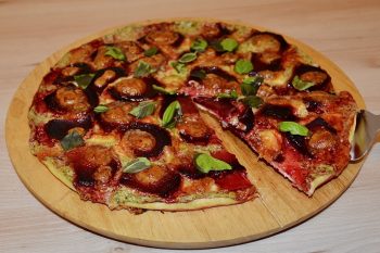 Mozzarella in Würfel schneiden. Sauerrahm und Pesto verrühren, nach Geschmack mit Salz und Pfeffer würzen. Tarte-Teig entrollen, mit Backpapier auf ein Backblech legen. Einen kleinen Rand rundherum aufrollen und andrücken. Teig mit der Pesto-Creme bestreichen, Rote Bete-Scheiben und Mozzarella-Würfel darauf verteilen und im vorgeheizten Backofen bei 200°C etwa 30 – 35 Minuten backen.