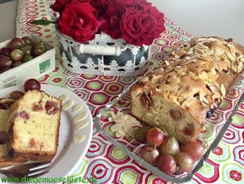 Teig in eine gefettete Kastenform geben. Stachelbeeren darauf verteilen und leicht eindrücken.