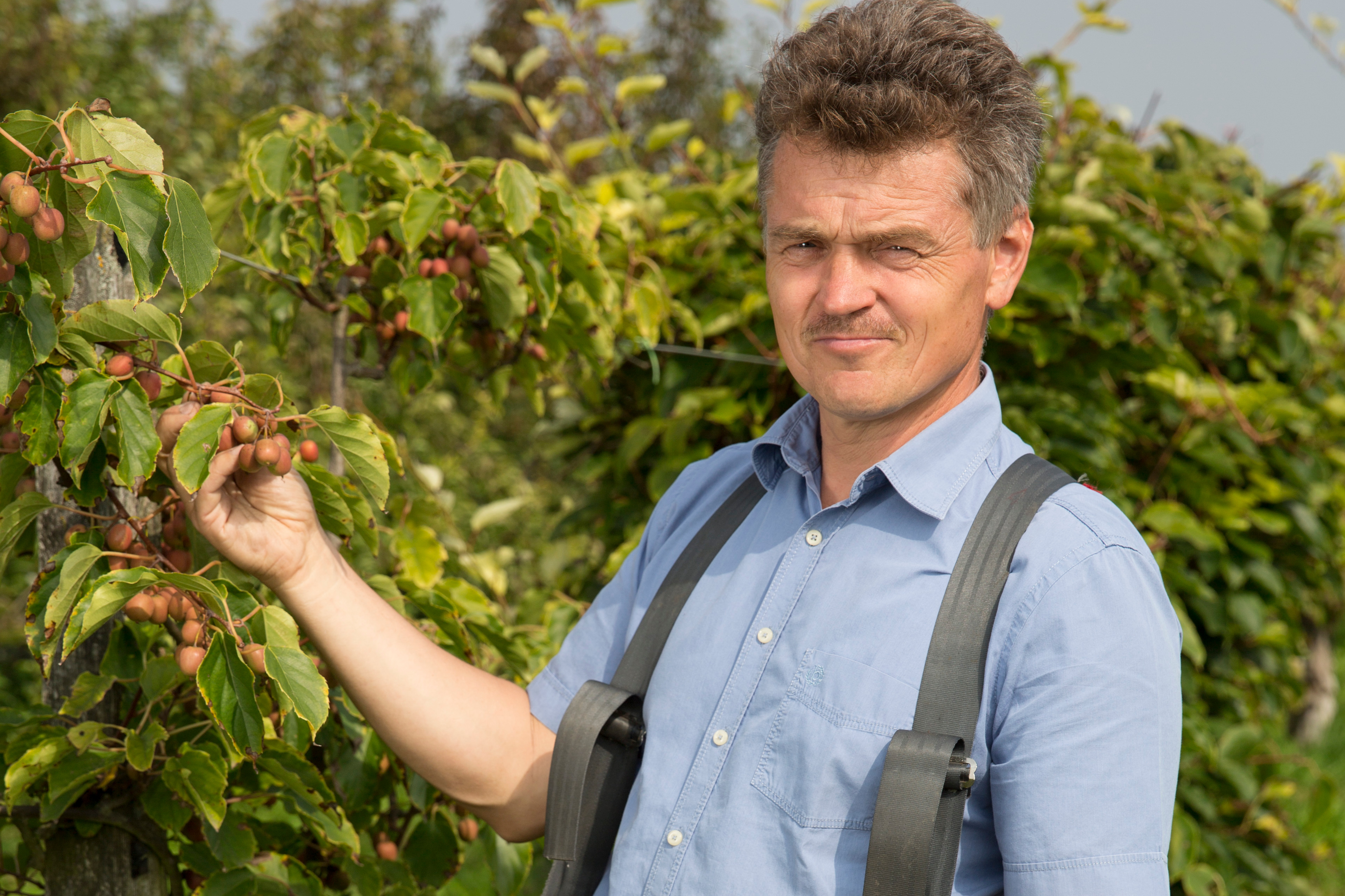 Der Hof in Brackenheim liegt im sonnigen Zabergäu, bei Heilbronn. Die Region (auch bekannt als „Klein Italien“) bringt aufgrund eines hervorragenden Klimas nicht nur charaktervolle Weine, sondern auch vielfältige Obstkulturen hervor. So gibt es natürlich viele verschiedene Apfelsorten von mild bis fein säuerlich (mehr Infos hierzu finden Sie in unserem „Apfelatlas“), Birnen, Zwetschgen, Tafeltrauben und verschiedene Beeren. Auch vor Exotischem oder Risikoreichem scheut sich Jürgen Winkler nicht. So baut er schon seit einigen Jahren Aprikosen, Pfirsiche und Nektarinen an, denen unsere Wintertemperaturen nicht immer zuträglich sind. Und auch Kiwis, besonders die kleinen Weinkiwis, werden auf dem Bio-Betrieb kultiviert.