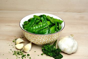 Die Knoblauchzehen schälen und durch eine Presse drücken. Butter in einer Pfanne erhitzen, den Knoblauch darin kurze Zeit dünsten und die Mischung über die in einer vorgewärmten Schüssel angerichteten Schoten gießen.